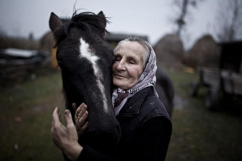 乌克兰扎克村,村民塔提亚娜与她的爱马。摄影师Mateusz Baj